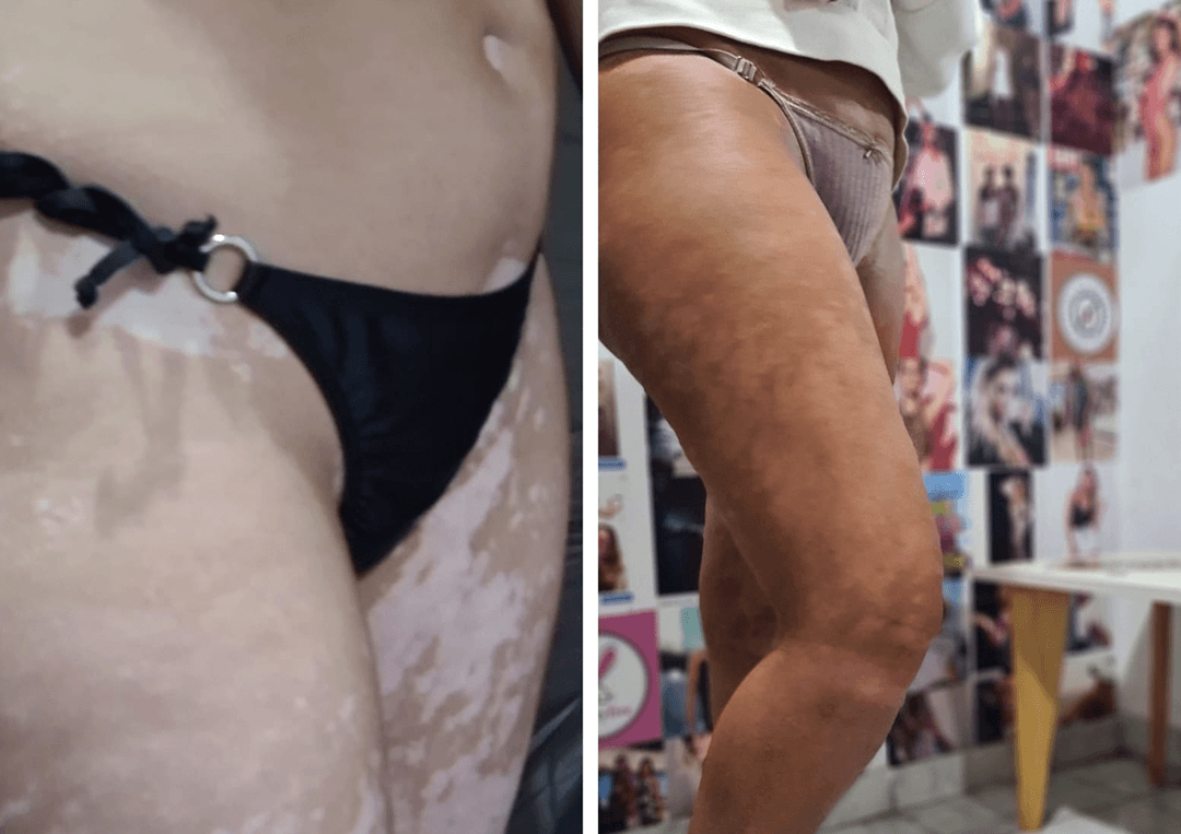 Desde Natural Bronze ofrecemos una solución estética para todas aquellas personas que quieran disimular las manchas de vitiligo o bien volver a verse bronceadas. Nuestras fórmulas y nuestro sistema innovador de aplicación proporcionan una solución para devolver el color a la piel por un lapso de tiempo aproximadamente una semana. Con solo una sesión de Natural Bronze logramos disimular esas zonas blancas, atenuando las manchas y proporcionando un tono más parejo.